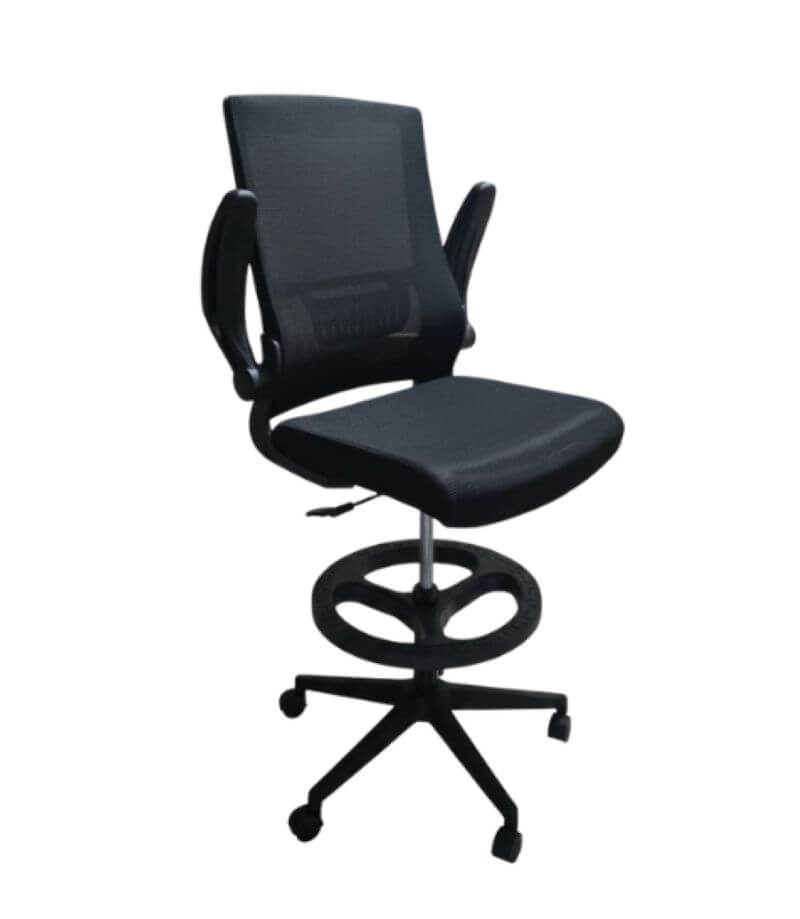 Cuenta con respaldo reclinable tapizado en malla y asiento tapizado en tela acojinado en espuma inyectada.